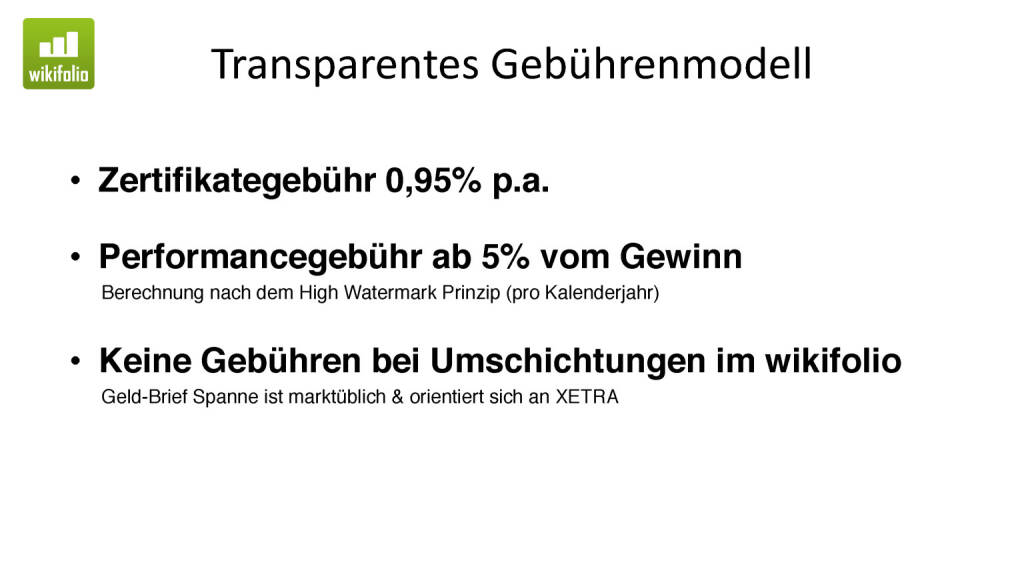 Präsentation Wikifolio - Transparentes Gebührenmodell