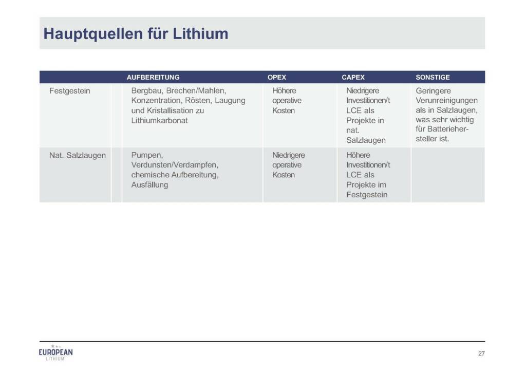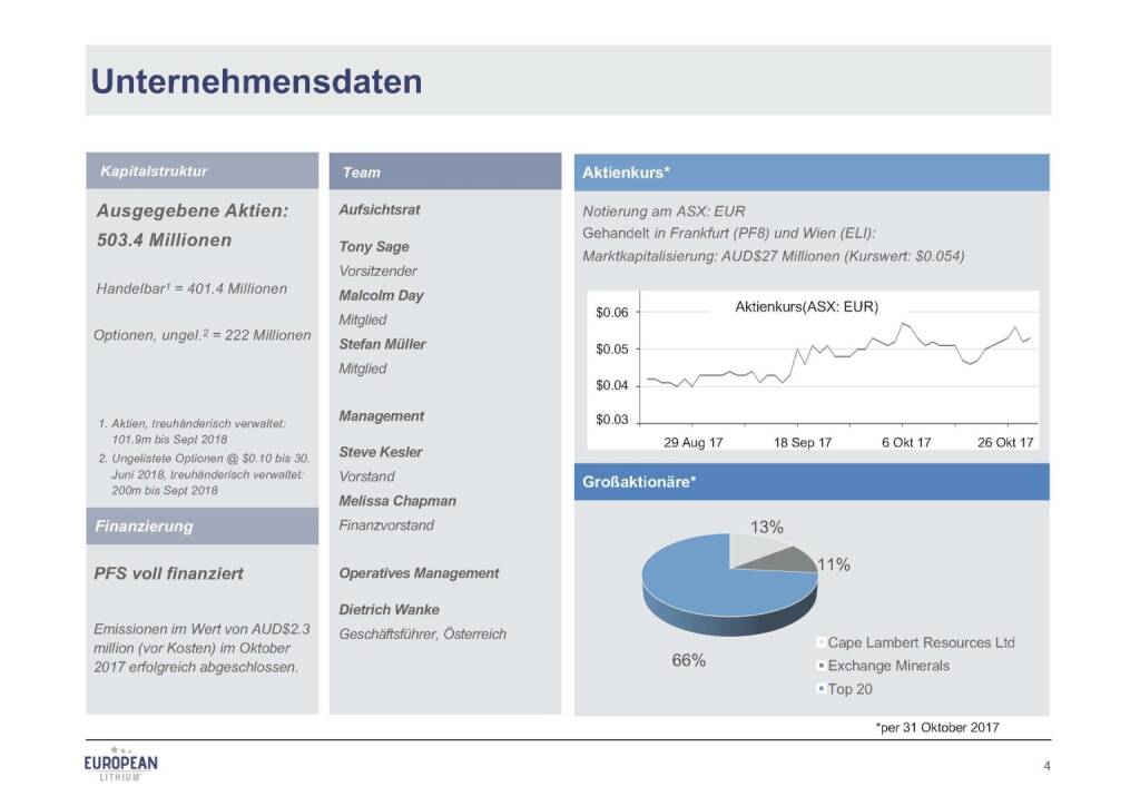 „ Präsentation European Lithium - Investitionseckpunkte “