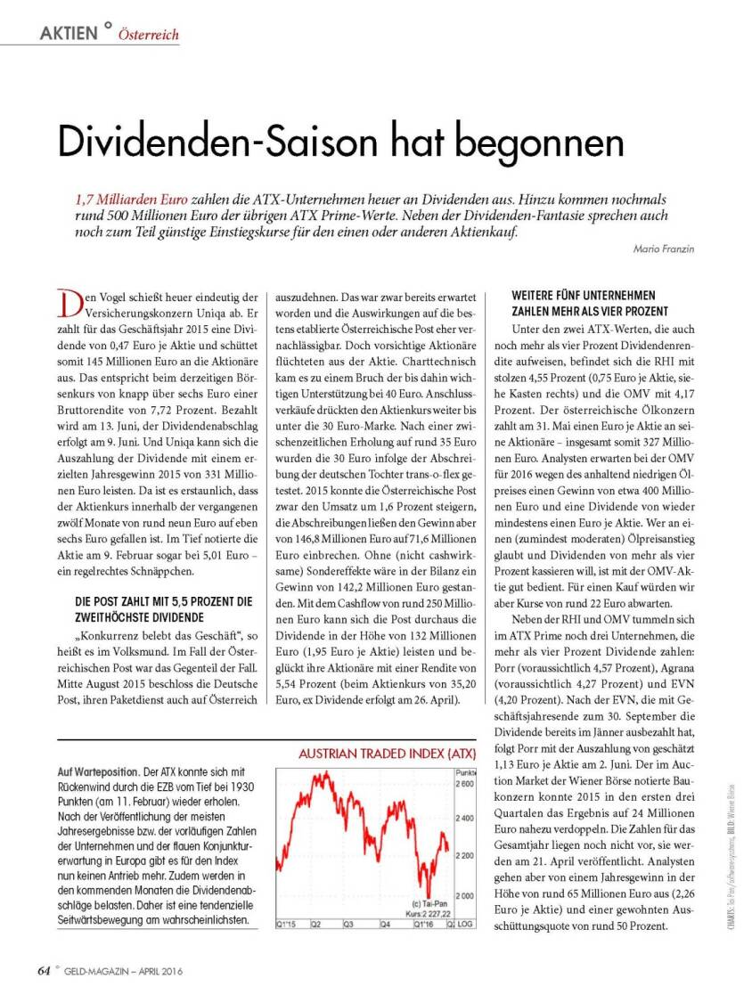Geld - Das Magazin für Wirtschaft, Politik & Investmentprodukte, Ausgabe 04/2016