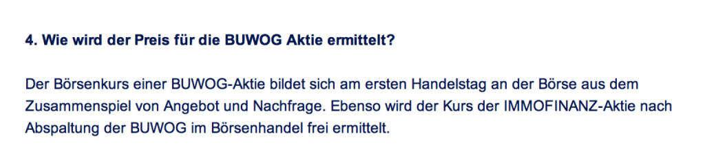„ Frage an Immofinanz/ Buwog: Wie wird der Preis für die Buwog Aktie ermittelt? “