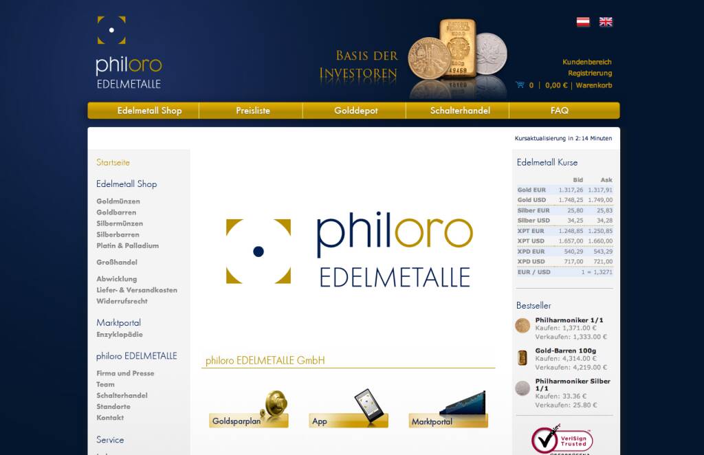 philoro.com, hier die Ansicht philoro.at