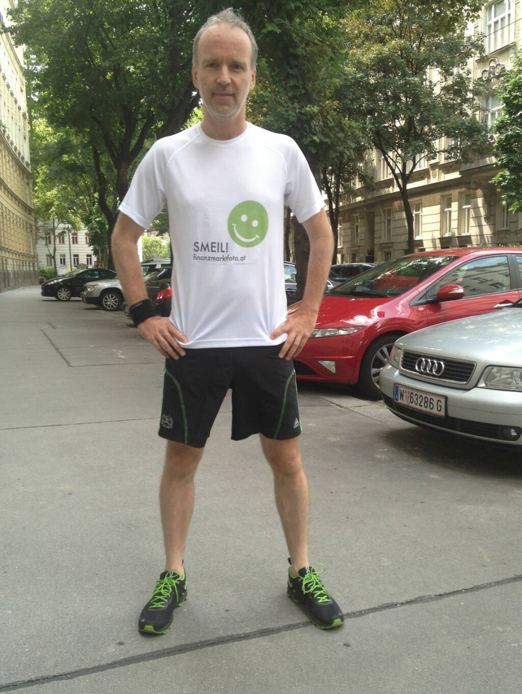 Habe ja recht grosse Laufpläne für heuer, erst wollte ich einen schnellen Halbmarathon angehen, aber die kürzeren Strecken taugen mir mehr, das längere fällt dann ja auch noch vor die Füsse. Aber erst: Ein 5km-Lauf unter 19:00, das wärs. Hab ich im neuen Jahrtausend noch nie geschafft. Als Motivation gilt auch das Smeil-T-Shirt in der Variante als Running Function Ware, mehr zu den Smeil-Shirts auch uner https://www.facebook.com/smeilpage ... Wer mit uns eine Corporate-Partner-Edition machen möchte, mailt mir an mailto:me@christian-drastil.com . Kosten: Selbstkostenpreis.
