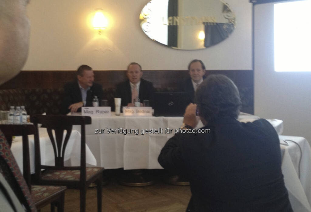 Dietmar Rupar, Heinz Bednar, Berndt May bei der Pressekonferenz "Weltfondstag am 19. April" (schneller Handyshot)