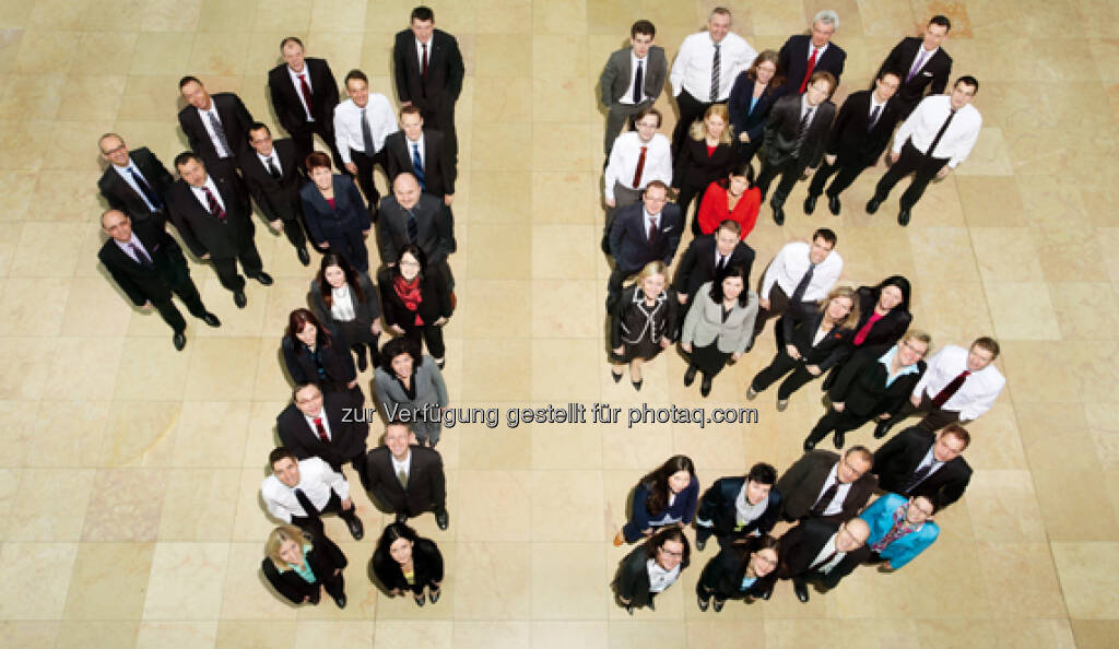 Zum 15. Geburtstag bedanken sich die Mitarbeiter der Kepler Fonds KAG bei Kunden und Vertriebspartnern für das langjährige Vertrauen. 50 Mitarbeiter bilden das Zeichen "15 Jahre" (c) Kepler