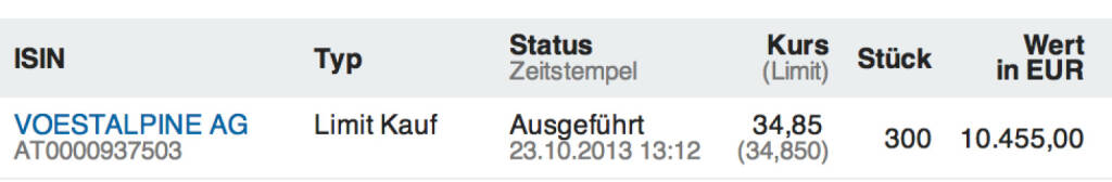 36. Trade für https://www.wikifolio.com/de/DRASTIL1: Ich kaufe 300 voestalpine zu 34,85 Euro und erhöhe damit ein wenig das Zykliker-Exposure im Wikifolio, bei fallenden Kursen würde ich weiter aufstocken