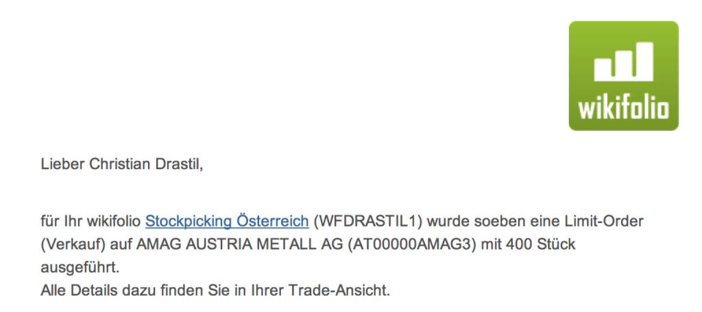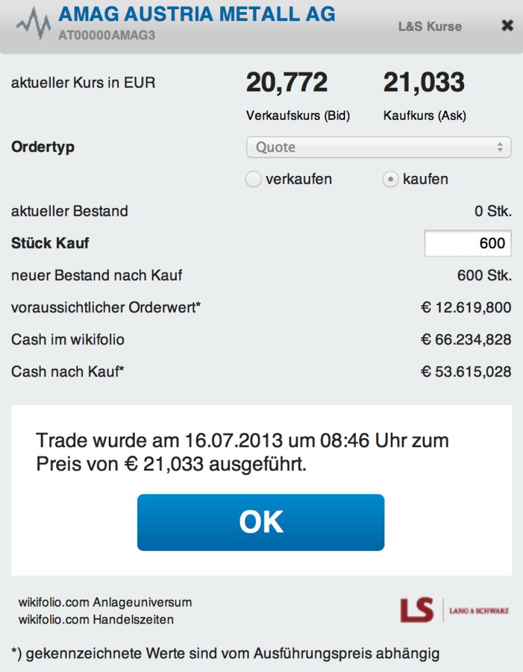1. Trade für https://www.wikifolio.com/de/DRASTIL1-Stockpicking-sterreich : 600 Amag zu 21,033 Euro (c) wikifolio