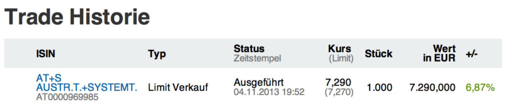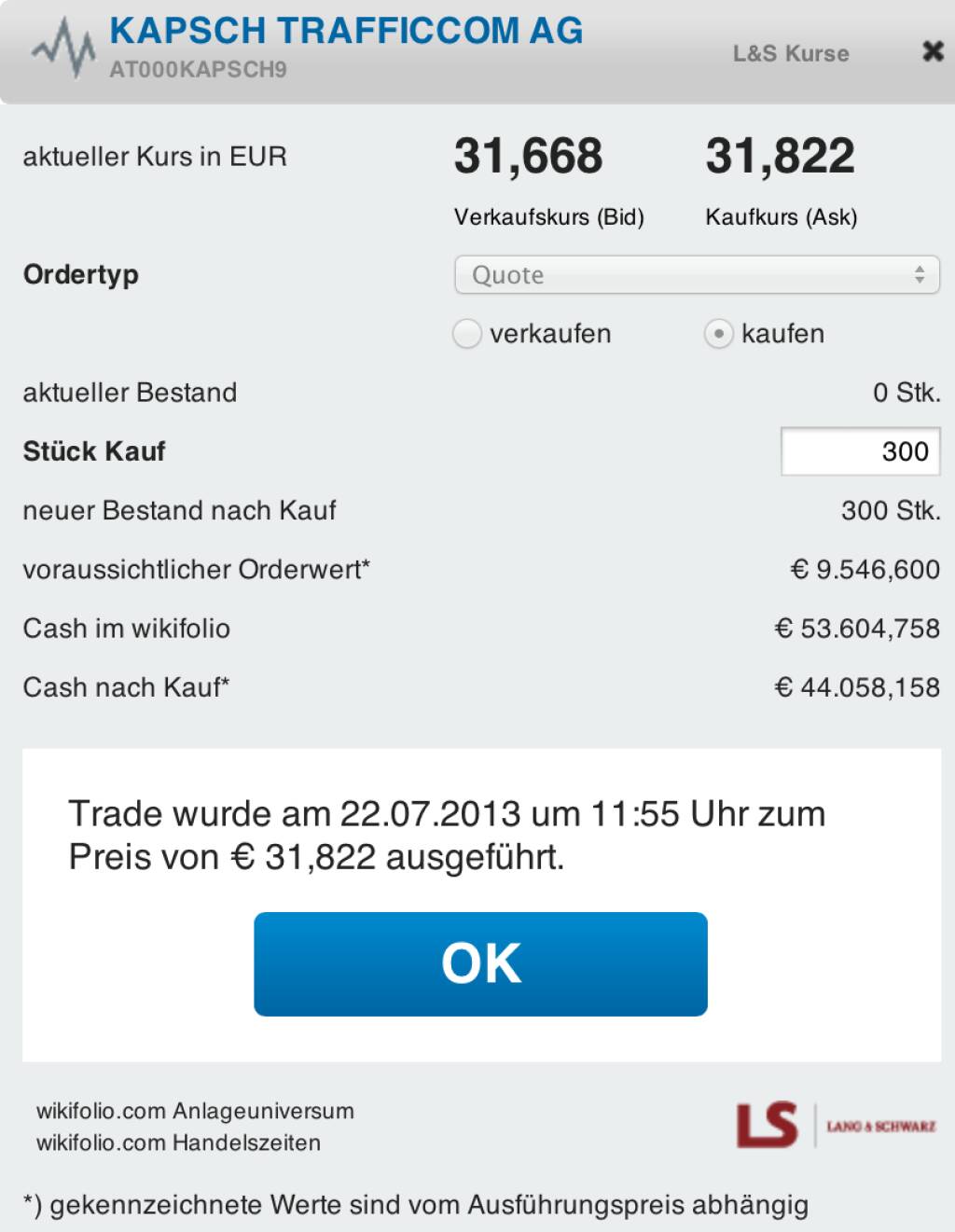 5. Trade für https://www.wikifolio.com/de/DRASTIL1-Stockpicking-sterreich : Kommentar zu KAPSCH TRAFFICCOM AG (AT000KAPSCH9) "Ich habe die Kapsch-Position halbiert, obwohl der Titel sehr billig scheint, ist das Sentiment derzeit einfach nicht gut. Die Medien beginnen, Kapsch ordentlich zu bashen, das Geldmagazin in Österreich zB oder das hier http://www.christian-drastil.com/2013/07/29/na_servas_kapsch_may_be_kaput in Südafrika ... "