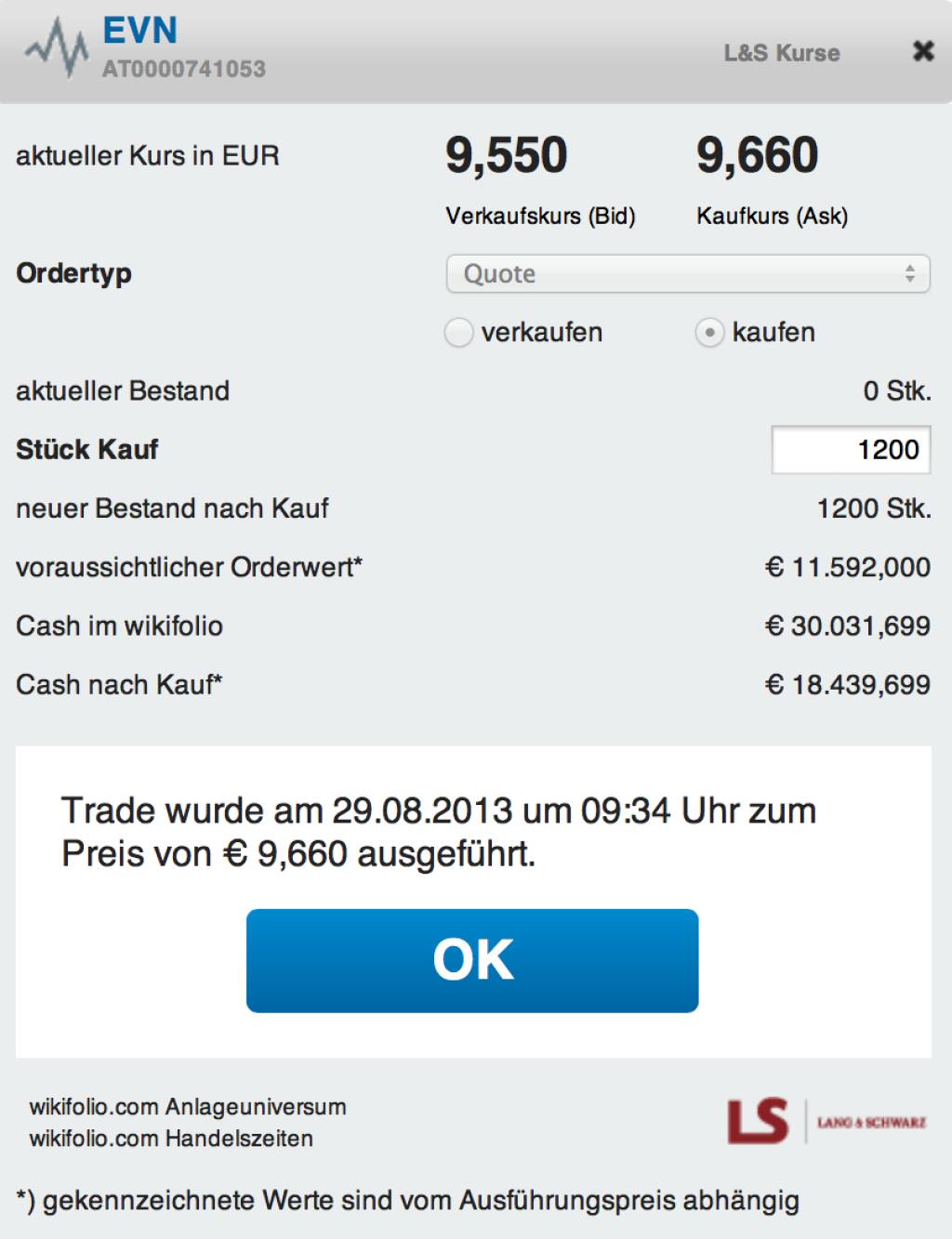 12. Trade für https://www.wikifolio.com/de/DRASTIL1-Stockpicking-sterreich:EVN - ich kaufe 1200 EVN nach der Vorlage eines Zahlenmaterials, das mir eigentlich recht gut gefällt