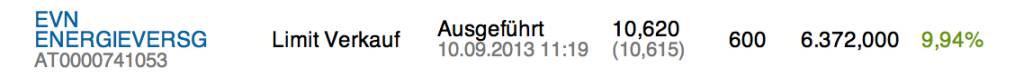 18. Trade für https://www.wikifolio.com/de/DRASTIL1-Stockpicking-sterreich: EVN - ich verkaufe meine Restposition EVN zu 10,94. Grund: Die Energiewerte sind sehr gut gelaufen, bei EVN nehme ich jetzt 13,25 Prozent mit, der Markt fällt und einige Schwergewichte erscheinen mir nun kurzfristig aufsammelbar