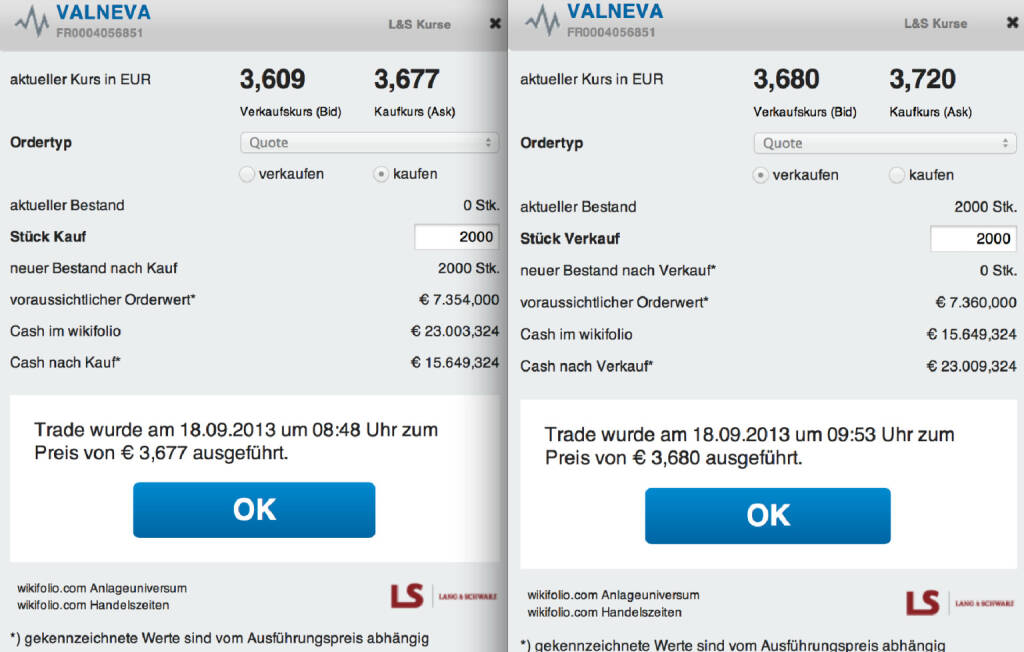 21. und 22. Trade für http://www.wikifolio.com/de/DRASTIL1: Ich habe vorbörslich 2000 Valneva ins Depot genommen und bewusst einen hohen Spread in Kauf genommen, weil Kepler vor Marktstart ein doch recht beeindruckendes Buy für die Aktie für die breite Masse veröffentlicht hatte. Am Sekundärmarktmarkt wurde die Luft dann aber doch rasch wieder dünner, sodass ich mit +/- Null wieder rausgegangen bin. War ein "News-Trading" in Bezug auf dieses Research, die Aktie war aber bereits gestern um fast 9 Prozent gestiegen.