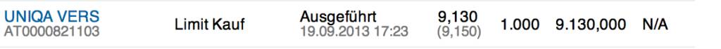 25. Trade für https://www.wikifolio.com/de/DRASTIL1: Kauf 1000 Uniqa zu 9,13, die Zahlen war gut, aber eine grosse Transaktion wurde kommuniziert, das zusätzliche Volumen drückt temporär auf den Sekundärmarktkurs