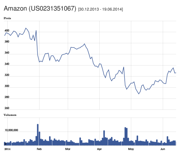 Die Amazon Aktie hat nach der Ankündigung des Fire Phone zunächst zugelegt, das Plus aber postwendend wieder verloren. Year-to-date gibt es ein kräftiges Minus, aber die Handelsumsätze haben deutlich zugelegt.