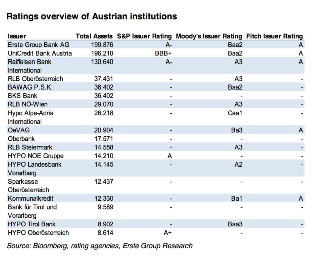 Rating Übersicht Austro-Banken (c) Bloomberg / Erste Research