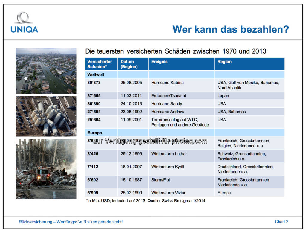 Rückversicherungen: Die teuersten versicherten Schäden zwischen 1970 und 2013