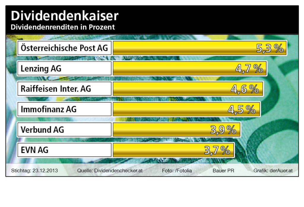 Dividendenkaiser Österreich: Post, Lenzing, RBI, Immofinanz, Verbund, EVN (c) Bauer PR, derAuer.at