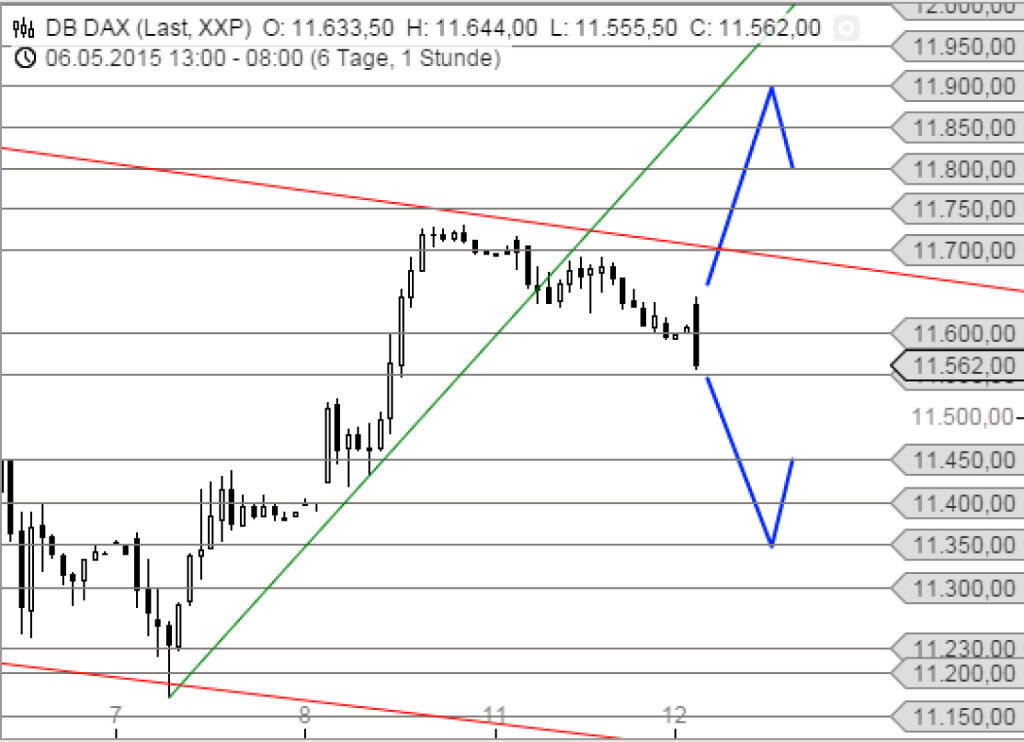 Intraday Widerstände: 11.600 + 11.700 + 11.750 + 11.800