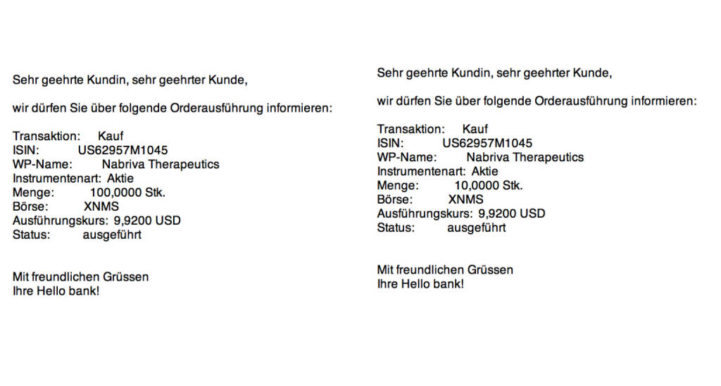Am Freitag hab ich den Nasdaq-Börsegänger mit Österreich-Bezug, Nabriva Therapeutics, in 100/100 aufgenommen. Dazu musste die Hello bank! das Wertpapier extra für mich anlegen. Passt. Ist eine nette Premiere. Von diesem Unternehmen (eine Unit in der Leberstrasse im 11. Bezirk) werden wir noch viel hören ...