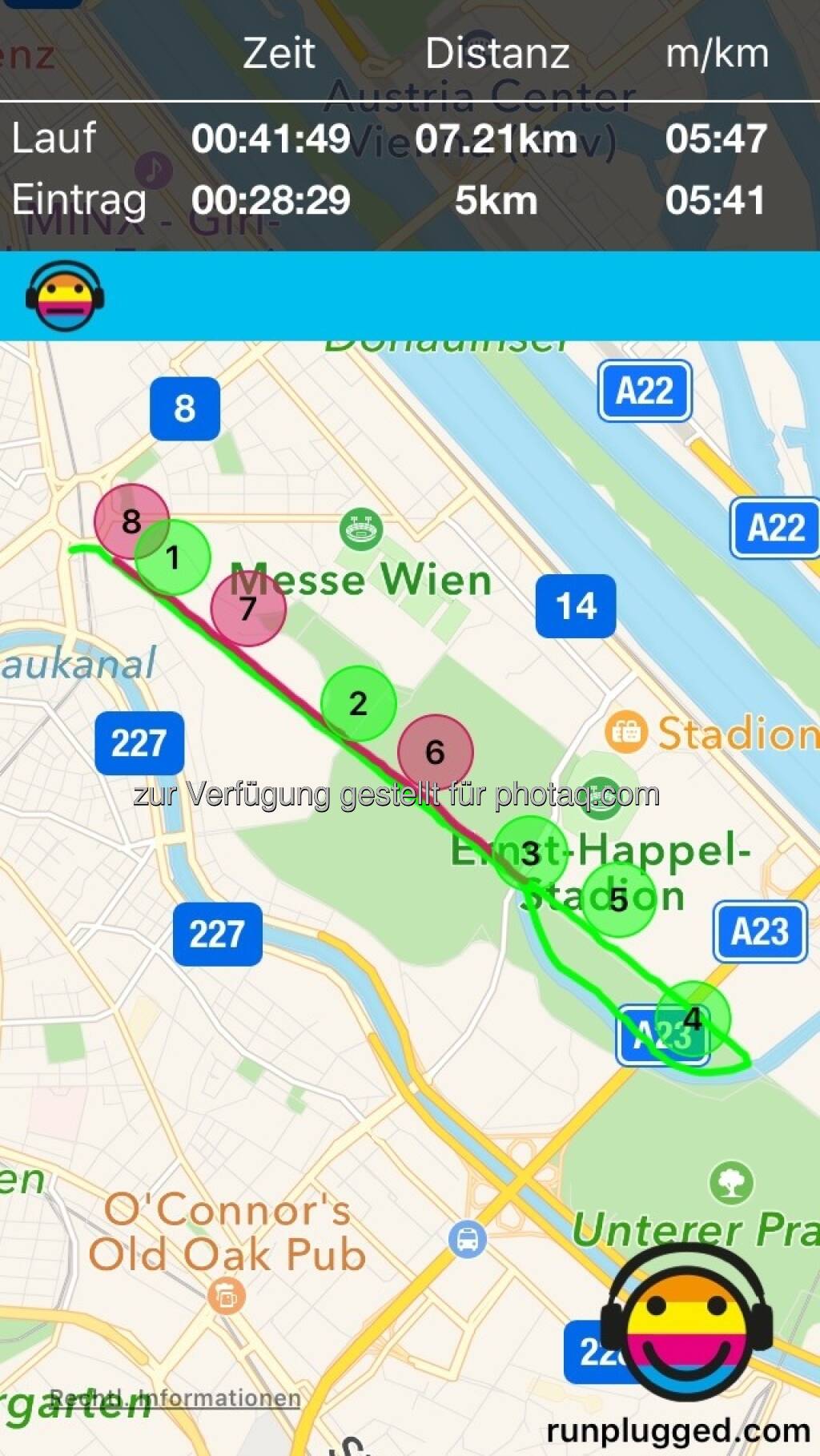 Irgendwie will das heuer mit mir und dem Laufen nichts werden. Bin zwar den Winter durchgelaufen, aber immer wieder Hüfte und/oder Knie, das dann deppert den Flow unterbricht. Mittlerweile nehme ich das halt wie es ist, langsam oder unregelmässig, egal, Hauptsache ein Lauf dann und wann. Wobei, heute war es mal wieder richtig fein! Und es war der erste Lauf mit der kürzlich releasten Neu-Version von runplugged, die jetzt auch hochoffiziell auf den Entwickler/Firma "Christian Drastil" läuft (siehe Screenshot), das hätte ich ihm, selbst ja auch so einer, nicht zugetraut, Hut ab!