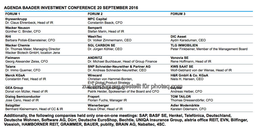 Zugemailt von / gefunden bei: Baader Bank (BSN-Hinweis: Lauftext im Original des Aussenders, Titel (immer) und Bebilderung (oft) durch boerse-social.com aus dem Fotoarchiv von photaq.com)