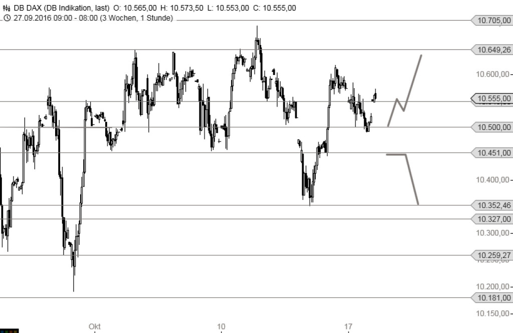 Intraday Unterstützungen: 10.550 + 10.500 + 10.451 + 10.352