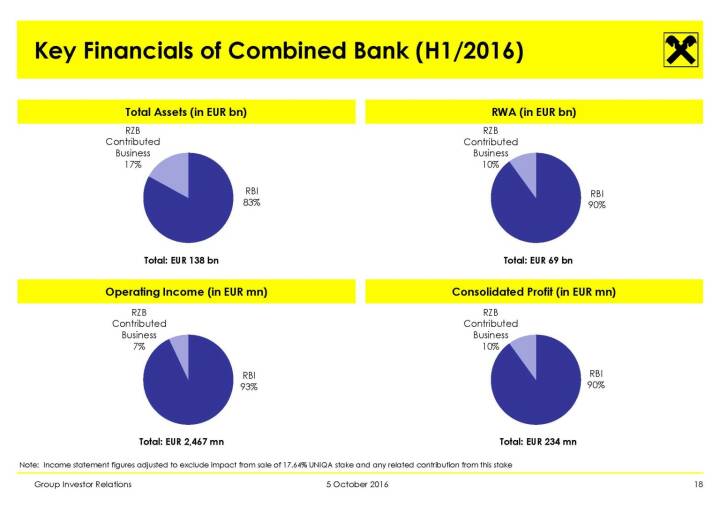 RBI - Key Financials of Combined Bank (H1/2016)