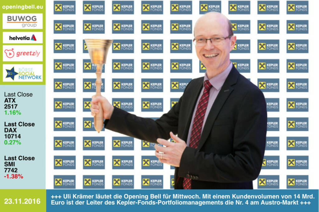 23.11.: Uli Krämer läutet die Opening Bell für Mittwoch. Mit einem Kundenvolumen von 14 Mrd. Euro ist der Leiter des
