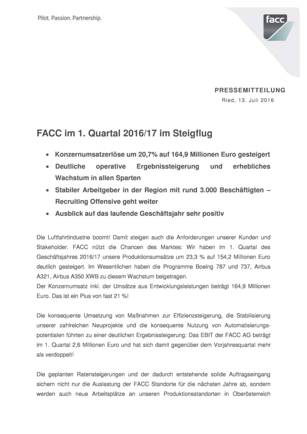 Die Flughafen Wien AG positioniert sich durch die geografische Lage im Zentrum Europas als eine der wichtigsten Drehscheiben zu den florierenden Destinationen Mittel- und Osteuropas. Der Flughafen Wien war 2016 Ausgangs- oder Endpunkt für über 23 Millionen Passagiere.