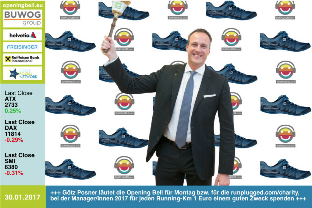 30.1.: Götz Posner läutet die Opening Bell für Montag bzw. für die http://www.runplugged.com/charity , bei der Manager/innen 2017 für jeden gelaufenen Kilometer 1 Euro einem guten Zweck eigener Wahl spenden https://www.facebook.com/groups/Sportsblogged https://www.facebook.com/groups/GeldanlageNetwork/