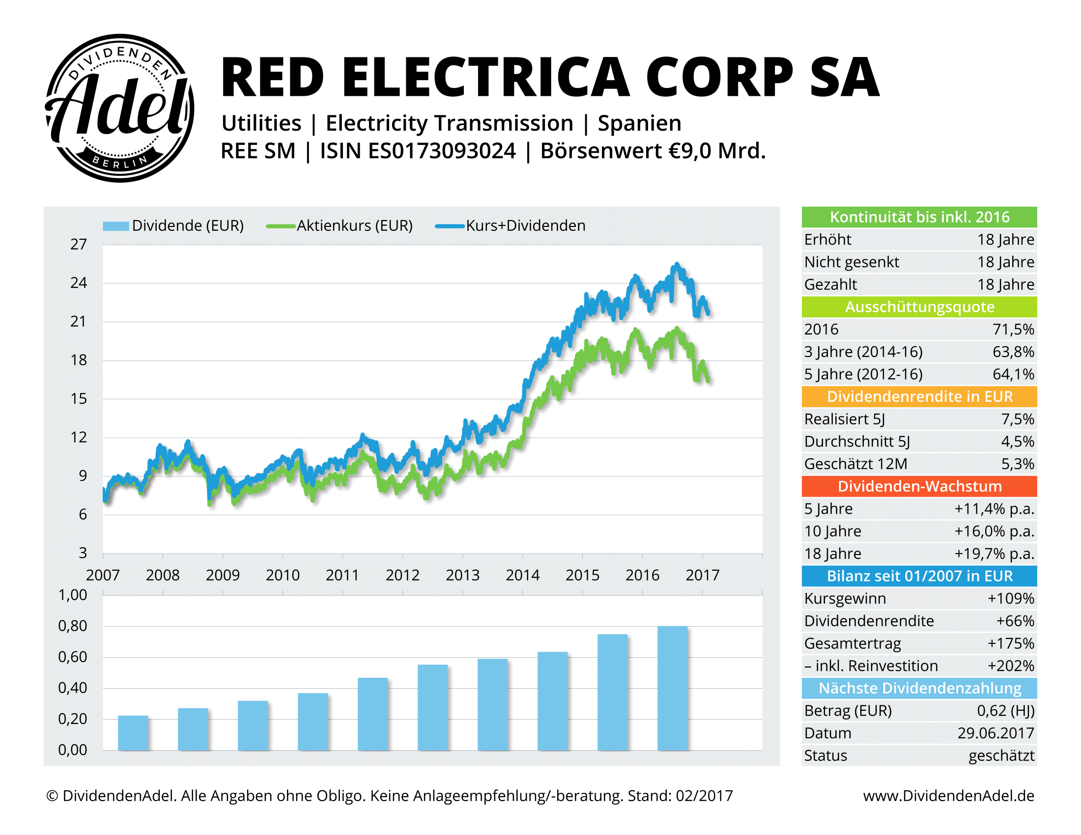 Red Electrica mit 18 Dividenden-Anhebungen in Serie