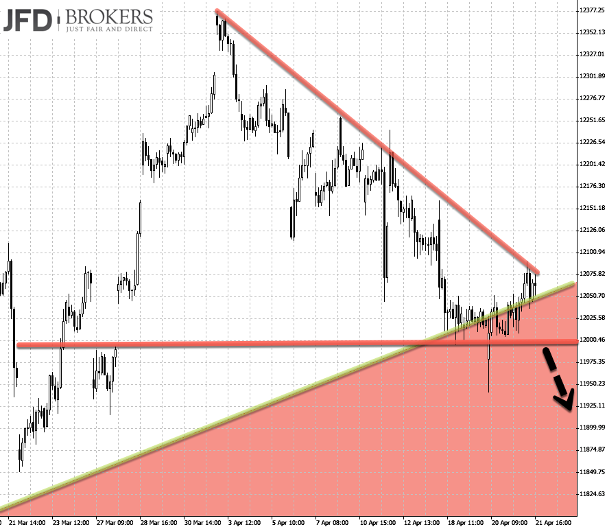 Per XETRA-Schluss wurde übrigens die 12.000 am Dienstag punktgenau gerettet! Somit versuchte der DAX am Mittwoch, diese Bewegung nachzuvollziehen. Zumindest zur Handelseröffnung, denn danach verließen ihn die Kräfte wieder. Auf der Unterseite trat nun das GAP aus Ende März in den Fokus: