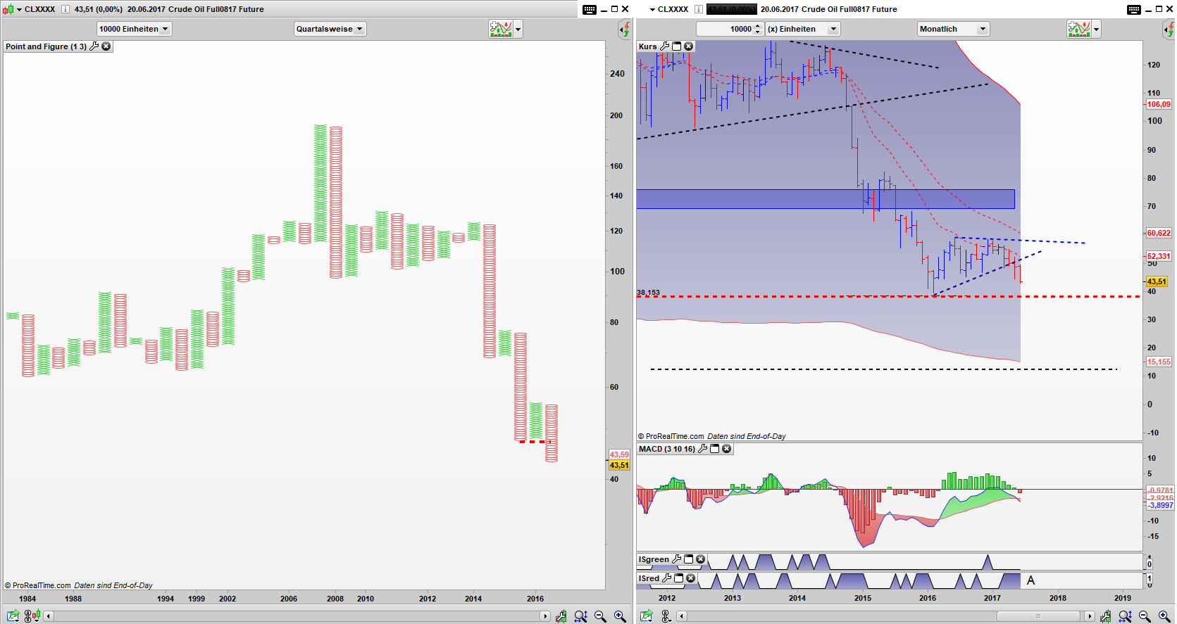 Die Schwäche und das mögliche Abwärtspotential im Sweet Light Crude Oil sprach ich schon Anfang Mai an.