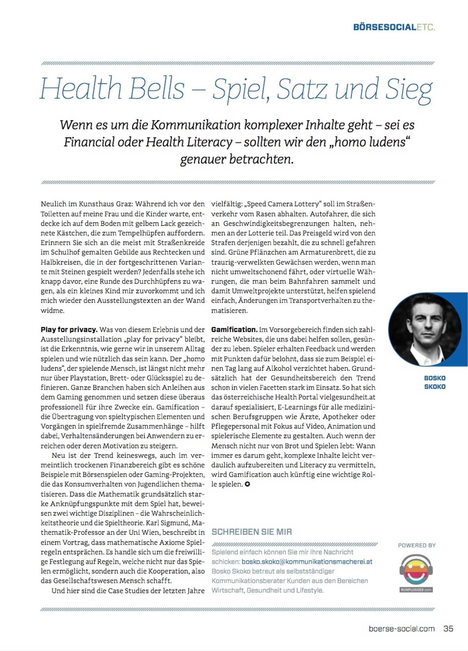 Spielend einfach können Sie mir Ihre Nachricht schicken: bosko.skoko@kommunikationsmacherei.at