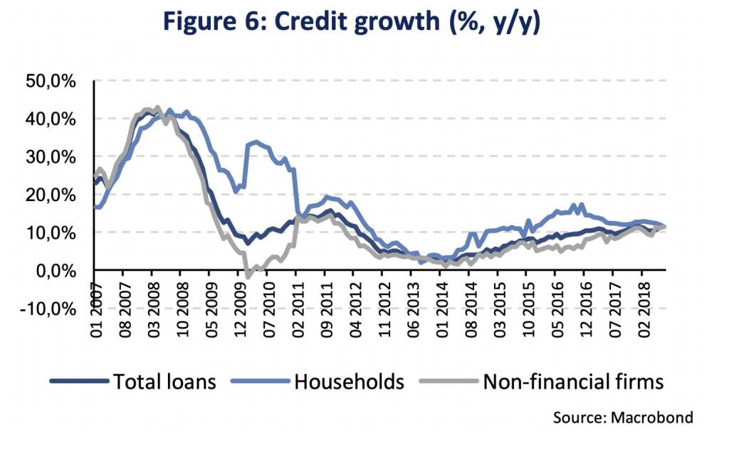 The conditions in the labor markets are improving in Serbia and Kosovo. Serbia’s unemployment rate (15 yr+) was 11.9 % in Q2. Employment has been expanding solidly (+3.2 % y/y in July) and real wages have been rising (4.0 % y/y in June). In Kosovo, unemployment is significantly higher (26.5 %), though it has also decreased recently (from 30.5 % in 2017). Official employment is very low. according to labor force statistics, there were 344,800 employed persons in Q1 2018, whereas the total population is around 1.9 million persons. Average monthly net wages (June) amounted to 417 Euro in Serbia and 526 Euro in Kosovo (gross wages were similar). Wages exhibited a considerable rise of 15.4 % in Kosovo providing support to household demand.