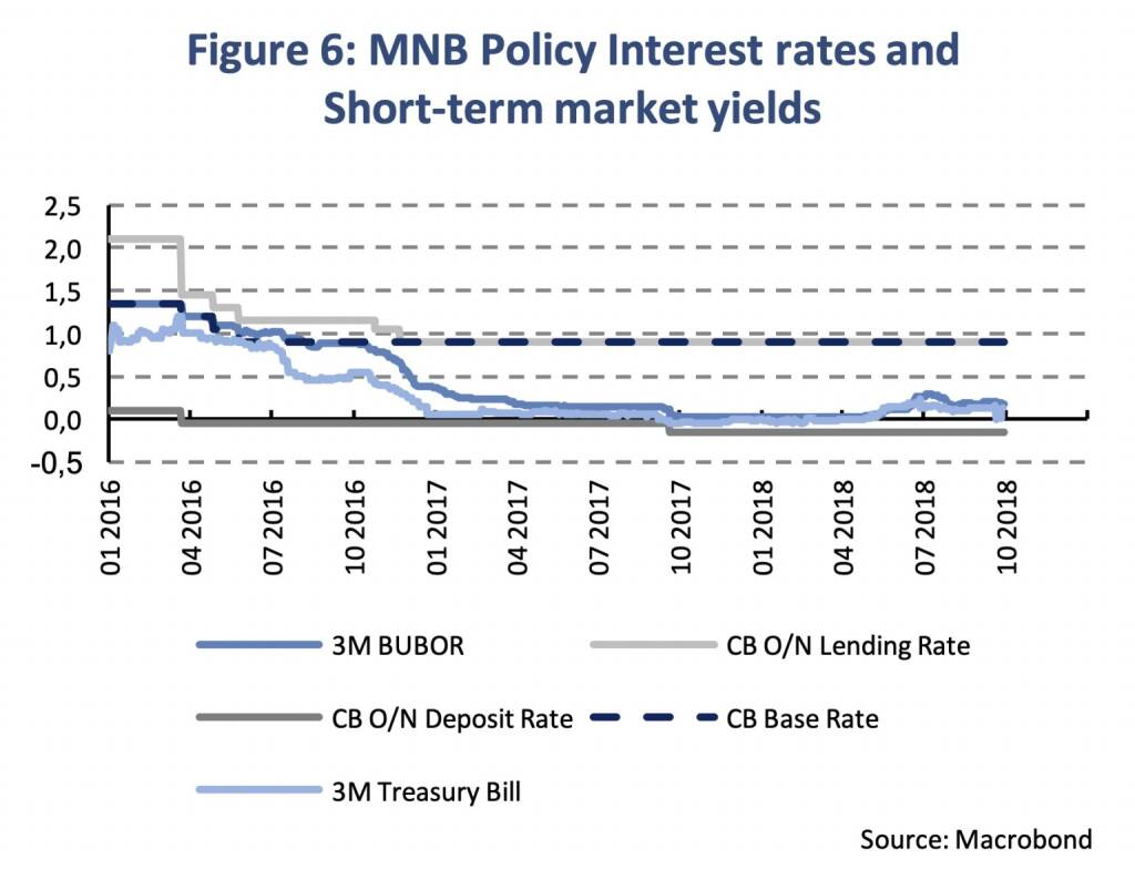 Fourth, a preferential deposit facility scheme was introduced to enable banks placing part of their excess liquidity to the MNB at the central bank’s base rate. Access to preferential deposits is, however, linked to the Market-based Lending Scheme (MLS). The MLS is a program with the intention to stimulate lending to SMEs by managing banks’ interest rate risks through providing interest rate swaps. During August 2018 banks deposited HUF 480 bn., on average, at the MNB under the preferential deposit facility, hence, exceeding required reserves. The preferential deposit facility will be prolonged as part of the Funding for Growth Fix (FSG Fix) program which will be launched in 2019. As the MLS expires, the FSG Fix program will continue to facilitate lending to SMEs by providing credit institutions with refinancing funds at an interest rate at 0 % which they lend further to SMEs to finance new investment in forint at a maximum margin of 2.5 % [3]. The total amount of the new program is HUF 1,000 bn. In contrast to previous programs the minimum maturity of loans eligible is set at 3 years and loans may only be granted for new investment purposes. The preferential deposit facility serves the purpose to sterilizing excess liquidity and, thus, ensuring the FGS Fix program to be liquidity neutral. The relevant terms & conditions, however, have not been formalized yet.