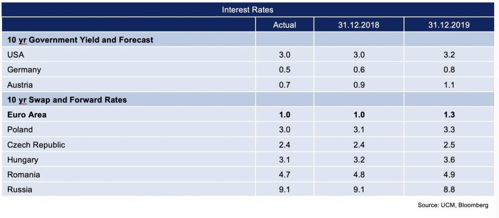 The Fed is continuing its interest rate hiking cycle leading to a higher short-term U. S. interest rates. Monetary policy is becoming less supportive (accommodative) while economic growth is projected to remain solid. The trajectory of the main policy interest rate is broadly consistent with different commonly used monetary policy rules (Taylor rules). When the huge balance sheet of the central bank decreases steadily over the next years, the effect on interest rates for longer maturities (term premium effect) will dissipate. Hence, U. S. treasury interest rates will keep rising gradually over the medium-term.