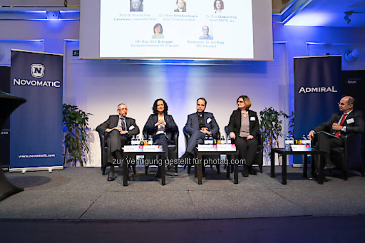 Unter der Moderation von Dr. Eric Frey (Publizist und Politologe) diskutierten im Anschluss Dr. Liessmann, Dr. Oliver Scheibenbogen (Leitung klinische Psychologie, Aktivierung, Therapieplanung, Anton Proksch Institut), Dr. Eva Glawischnig (Head of Corporate Responsibility & Sustainability, NOVOMATIC AG), MR Mag. Alice Schogger (Leiterin der Stabsstelle Spielerschutz, Bundesministerium für Finanzen) über das Zusammenspiel und die unterschiedlichen Einflussbereiche zwischen Politik, Unternehmen und Kunden, um gesellschaftliche Verantwortung in der Glücksspielbranche bestmöglich umzusetzen. Daneben wurden Beispiele aus der Praxis präsentiert.