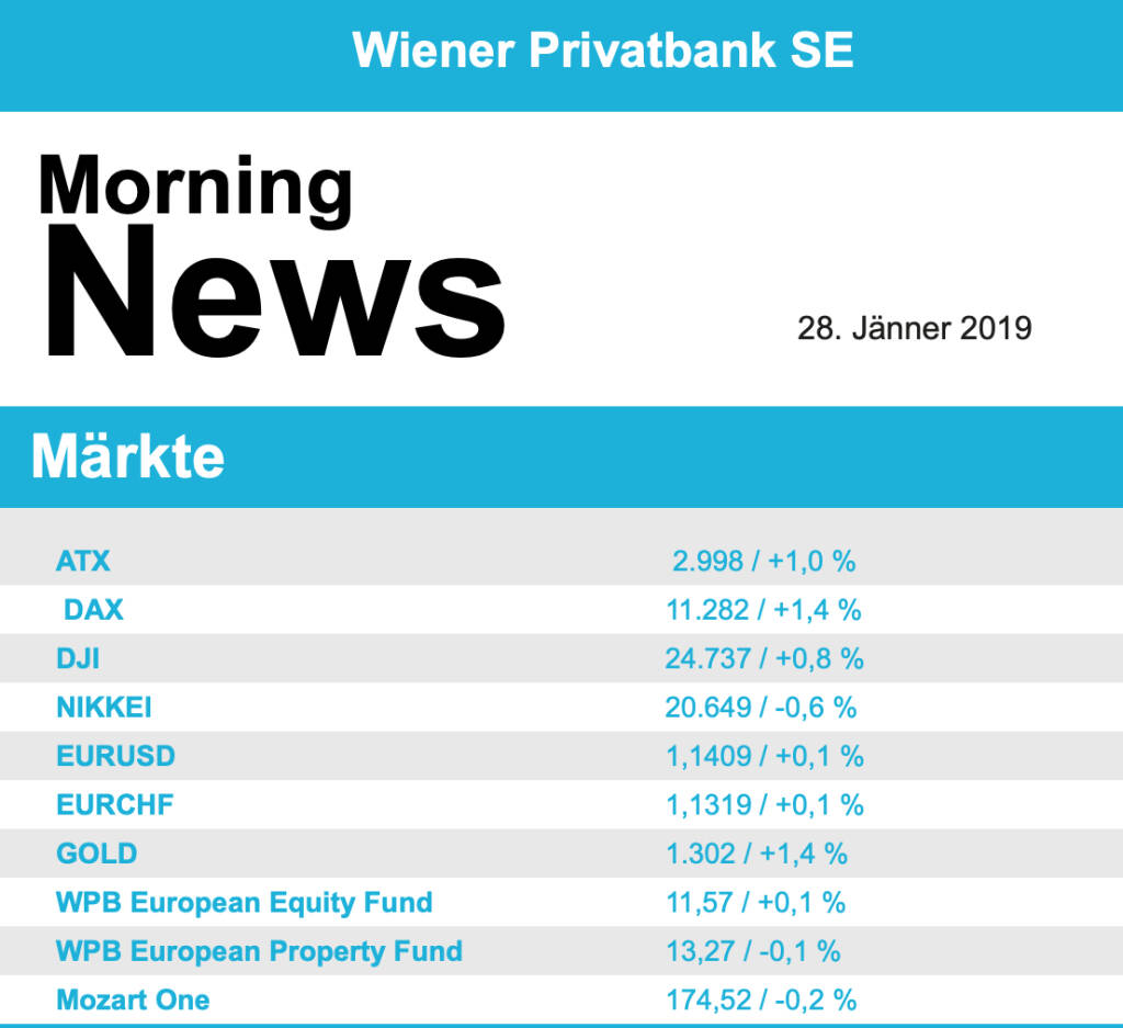 Die Ölpreise waren wieder im Aufwind, Brent schloss 0,9% höher WTI konnte 1,1% zulegen. Gold zeigte gleichfalls Stärke und endete bei rund 1.300 US-Dollar. Der Euro zog in der zweiten Tageshälfte gegen den US-Dollar an, das Währungspaar fand einen Kurs bei rund 1,14.