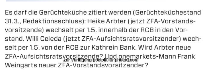 Frank Weingarts wurde zum neuen Vorsitzenden des Vorstands des Zertifikate Forum Austria gewählt. Weingarts, 54, Head of Private Investor Products Austria im Team onemarkets der UniCredit und Mitglied des Vorstands des Zertifikate Forum Austria seit der Gründung im Jahr 2006, folgt damit Heike Arbter, die ihr Vorstandsmandat im Vorfeld ihrer Berufung zum Vorstand der Raiffeisen Centrobank zurücklegte. Heike Arbter wechselte in den Aufsichtsrat des Zertifikate Forum Austria und übernahm damit das Mandat von Wilhelm Celeda, der den Vorstandsvorsitz der Kathrein Bank übernehmen wird. Arbter, die seit Gründung des ZFA im Vorstand des Forums tätig war und seit dem Jahr 2009 den Vorsitz führte, wurde zur Vorsitzenden des Aufsichtsrats gewählt. Das Mandat der RCB im Vorstand des ZFA wurde Philipp Arnold übertragen, dem neuen Head of Structured Products Sales bei der Raiffeisen Centrobank AG.