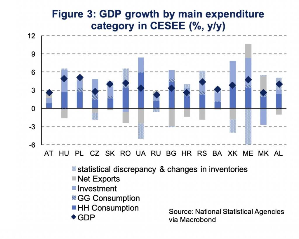 So far negative effects from weaker external demand have been more than compensated by a boost in domestic demand. The structure of GDP growth in many CEE economies has increasingly shifted towards household consumption as well as investment activity. Net-exports, on the other hand, have subtracted from GDP growth in 2018, not in Montenegro and North Macedonia though (Figure 3).