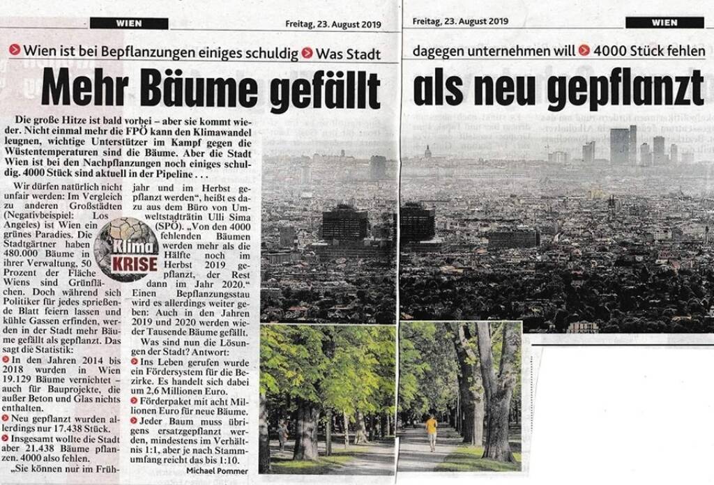 Die Wiener Baumschulden... mehr Bäume gefällt als neu gepflanzt