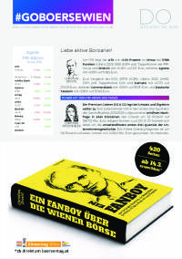 Aktien auf dem Radar:Polytec Group, Zumtobel, Kapsch TrafficCom, EuroTeleSites AG, Addiko Bank, Rosenbauer, voestalpine, Porr, Wienerberger, CA Immo, OMV, SBO, Frequentis, DO&CO, Austriacard Holdings AG, Bawag, RHI Magnesita, BKS Bank Stamm, Telekom Austria, SW Umwelttechnik, Oberbank AG Stamm, Josef Manner & Comp. AG, UBM, Flughafen Wien, Agrana, Amag, EVN, FACC, CPI Europe AG, Österreichische Post, Verbund.