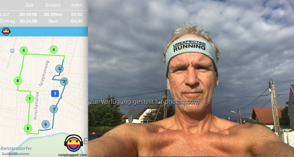 Das war unexpected schweisstreibend. Heute hat es den ganzen Tag geregnet und eigentlich fühlte es sich beim Weglaufen recht frisch an. Aber irgendwie dann doch schwül, so hab ich mir nach 3k das Shirt ausgezogen, dann ging es besser.