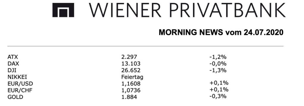 Etwas besser als im übrigen Europa lief es gestern für den heimischen Markt, der ATX konnte sich um 0,2% verbessern. Auch in Wien war der Handel eher ruhig und das umgesetzte Volumen blieb gering, Unternehmensnachrichten waren eher dünn gesät. Die Banken hatten gestern einen schwachen Tag, am besten hielt sich noch die Bawag mit einem Abschlag von 0,1%, für die Erste Group ging es 2,3% nach unten und auch die Raiffeisen musste 2,5% abgeben. Belastung für diesen Sektor kam durch Berichte, wonach die Europäische Zentralbank die Unternehmen anhalten könnte über einen längeren Zeitraum als bisher empfohlen auf Dividendenausschüttungen zu verzichten. Hauck und Aufhäuser erhöhten das Kursziel für Palfinger von 21,0 Euro auf 30,0 Euro und verbesserten gleichzeitig die Empfehlung von „Hold“ auf „Buy“, in den Augen der Analysten ist die Aktie eine großartige Möglichkeit, um auf eine zyklische Konjunkturerholung nach dem Tiefpunkt um zweiten Quartal zu setzen, der Kranhersteller handelte über weite Strecken deutlich im Plus und konnte sich bis zu fünf Prozent verbessern, gegen Ende des Handels mussten aber die Gewinne wieder abgegeben werden und es kam zu einem nahezu unveränderten Schlusskurs. Gewinner des Tages war Semperit, für den Gummikonzern brachte der Handel eine Verbesserung um 4,6%, auch Warimpex war sehr gefragt, der Immobilienentwickler erzielte ein Plus von 3,3%. Verbund konnte sich weiter verbessern, für den Versorger ging es gestern um 1,4% nach oben, auch Frequentis erzielte einen Zuwachs von 1,2%. Die Liste der Verlierer wurde von UBM Development mit einem Minus von 3,6% angeführt, EVN musste gleichfalls abgeben und schloss 3,5% schwächer. Wenig beliebt war auch FACC, für den Luftfahrtzulieferer ging es um 3,0% nach unten, auch AMAG wurde verkauft, der Aluminiumkonzern musste mit einem Rückgang von ebenfalls 3,0% den Handel beenden.