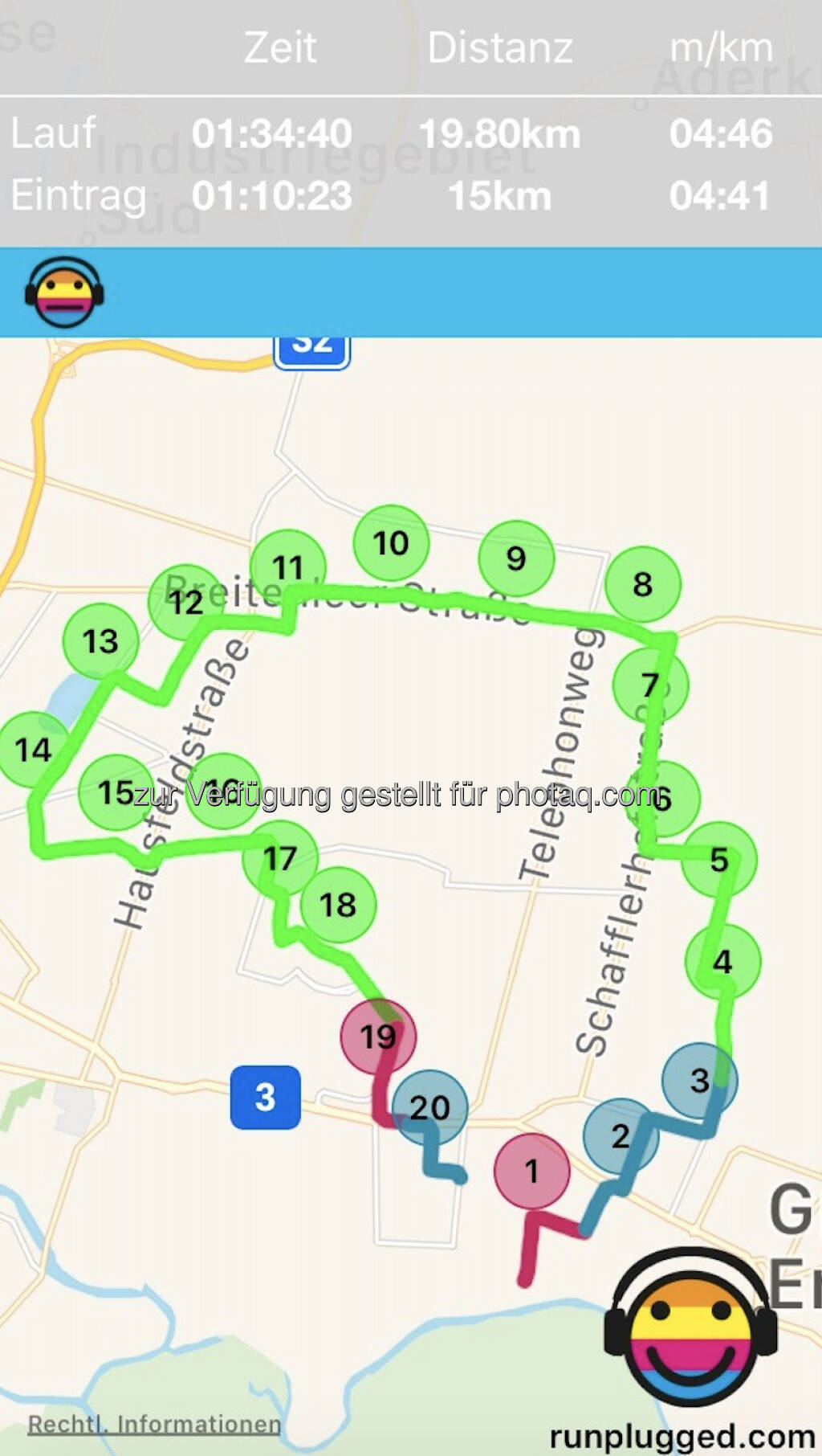 Ein schöner 20er in Pace 4:46, es war angenehm kühl und der erste Teil war jener mit Gegenwind, sodass es dann hintenraus mit Rückwind nicht sehr anstrengend war. Im Ohr Pearl Jam, genial.