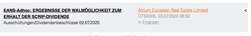 Ad hoc announcement- Jersey, 5 August 2020, Atrium European Real Estate Limited