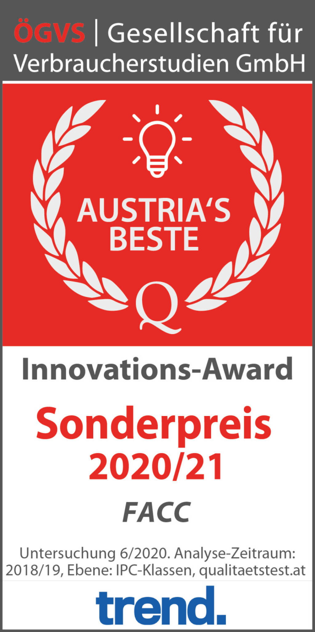 Innovations-Award ÖGVS/trend: Das Wirtschaftsmagazin trend und die Gesellschaft für Verbraucherstudien (ÖGVS) zeichneten FACC als Sonderpreisträger des Innovations-Awards 2020/2021 aus. Fotorechte: © ÖGVS/trend