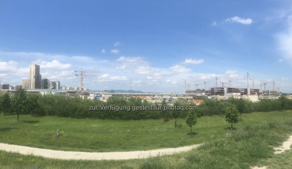 Blick auf die Seestadt , ich sehe Buwog, Strabag und Porr