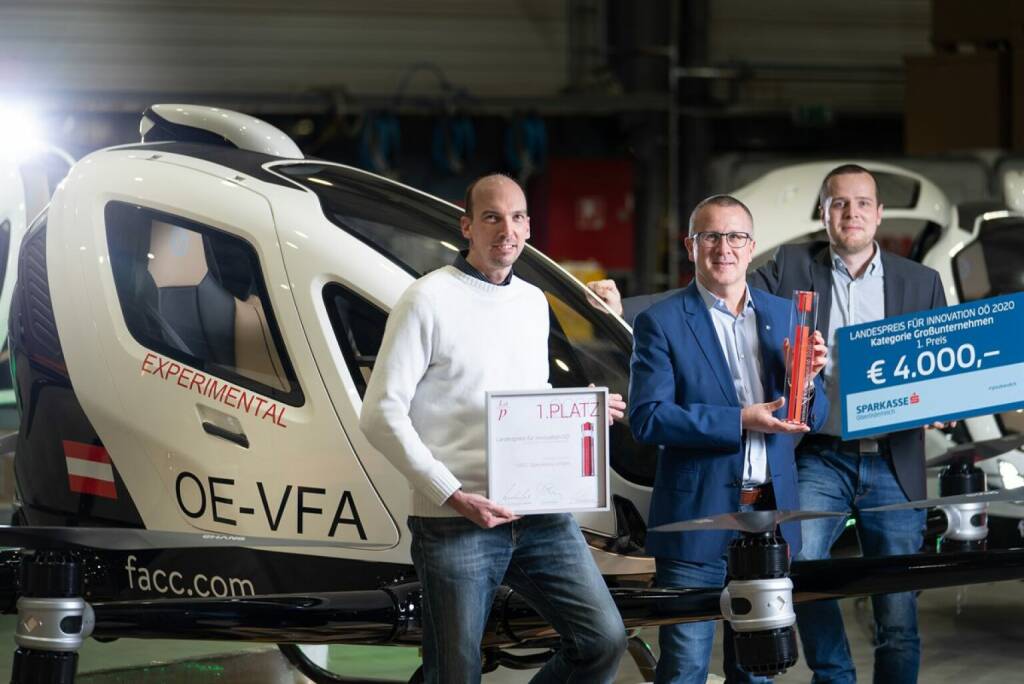 FACC wurde für das autonome Flugtaxi, das gemeinsam mit EHang entwickelt wurde, beim Landespreis für Innovation mit dem 1. Platz in der Kategorie Großunternehmen geehrt. FACC-CEO Robert Machtlinger: „Diese Auszeichnung mit dem oberösterreichischen Innovationspreis macht uns sehr stolz und zeigt uns, dass wir auch in diesen herausfordernden Zeiten richtig unterwegs sind. Vielen Dank an die gesamte Belegschaft, die diesen Erfolg gemeinsam erarbeitet hat“.