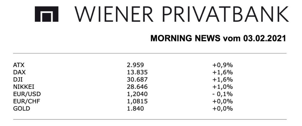 An den starken Wochenbeginn anknüpfen konnte auch der heimische Markt, der ATX schaffte eine weitere Verbesserung von 0,9%. Bei den Einzelwerten galt die Aufmerksamkeit AT&S, der Leiterplattenhersteller präsentierte seine Ergebnisse und konnte in den ersten drei Quartalen einen Rekordumsatz und ein kräftiges Gewinnplus erzielen, der Umsatz stieg um 17,3 Prozent auf 883,8 Millionen Euro, das Konzernergebnis legte um 47,8 Prozent auf 37,3 Millionen Euro zu, die Prognose für das Gesamtjahr 2020/21 wurde ebenfalls angehoben, nach einem starken Beginn drehte die Aktie am Nachmittag aber ins Minus und endete mit einer 2,0% tieferen Notierung. Die Baader Bank verdoppelte nahezu das Kursziel für Lenzing und erhöhte es von 67,0 Euro auf 123,0 Euro, gleichzeitig wurde die Einstufung von „Add“ auf „Buy“ hochgezogen, das österreichische Unternehmen wurde in die Liste der drei bevorzugten Werte im europäischen Chemiesektor aufgenommen, die Aktie konnte ihren Höhenflug fortsetzen und weitere 1,7% zulegen, während des Handels wurde der höchste Stand seit Mitte Juli 2018 erreicht. Die Berenberg Bank hob das Kursziel für FACC von 7,0 Euro auf 7,5 Euro an, bestätigte aber die Verkaufsempfehlung. Als Begründung wurde genannt, dass in den Augen der Analysten die Kursrally seit Jahresbeginn übertrieben sei, gestern musste der Flugzeugzulieferer 2,0% nachgeben. Warburg Research bestätigte sowohl die Kaufempfehlung als auch das Kursziel von 48,5 Euro für UBM Development, der Immobilienentwickler konnte sich dank dieser Einstufung um 3,2% verbessern. Die Banken hatten einen guten Tag, allen voran die Bawag mit einem Anstieg von 3,9%, die Erste Group schaffte einen Zuwachs von 1,6% und für die Raiffeisen ging es um 1,1% nach oben. Gewinner des Tages war gestern der Flughafen Wien, der von der europaweiten Sektorenstärke profitierte und um 5,0% nach oben schoss. Gesucht war auch Schoeller-Bleckmann, dank der wieder anziehenden Ölpreise ging es für den Ölfeldausrüster um 4,0% nach oben. Ebenfalls zu den Gewinnern zählte Polytec, die Stärke der deutschen Autozulieferer schwappte auch auf das österreichische Unternehmen über und liess den Titel 3,2% befestigt schliessen. Auch für Rosenbauer ging es weiter nach oben, gestern konnte der Feuerwehrausrüster 2,2% zulegen. Schwächster Titel des gestrigen Handelstages war die Österreichische Post mit einem Rückgang um 4,0%, neben den schon genannten Verlierern hatte auch Zumtobel einen schwachen Tag, der Leuchtenhersteller musste 1,2% tiefer schliessen.