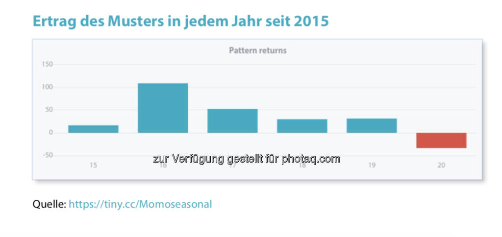 Das folgende Balkendiagramm zeigt die in der saisonal starken Periode zwischen 10. Februar und 9. April erzielten Erträge der Momo Inc. Aktie in jedem einzelnen Jahr seit 2015. Blaue Balken stellen Jahre mit positiven Erträgen dar. Bitte beachten Sie, dass Sie mit Hilfe der Filterfunktion statistische Ausreißer herausfiltern können. Zum Beispiel kann ein seltenes Ereignis wie der Corona- Crash, der Mitte März 2020 seinen Tiefpunkt erreicht hat, ein saisonales Muster schlechter aussehen lassen, als es tatsächlich ist.